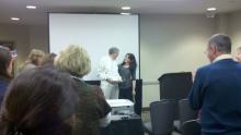 Dana Lepofsky presenting Richard Ford with the first annual Distinguished Ethnobiologist Award. Photo by Trainor.