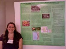 Victoria Wyllie de Echeverria from University of Victoria stands by her poster "Moolks (Pacific crabapple, Malus fusca Raf.): Knowledge and Meaning in Gitga'at Culture". Photo by Trainor.